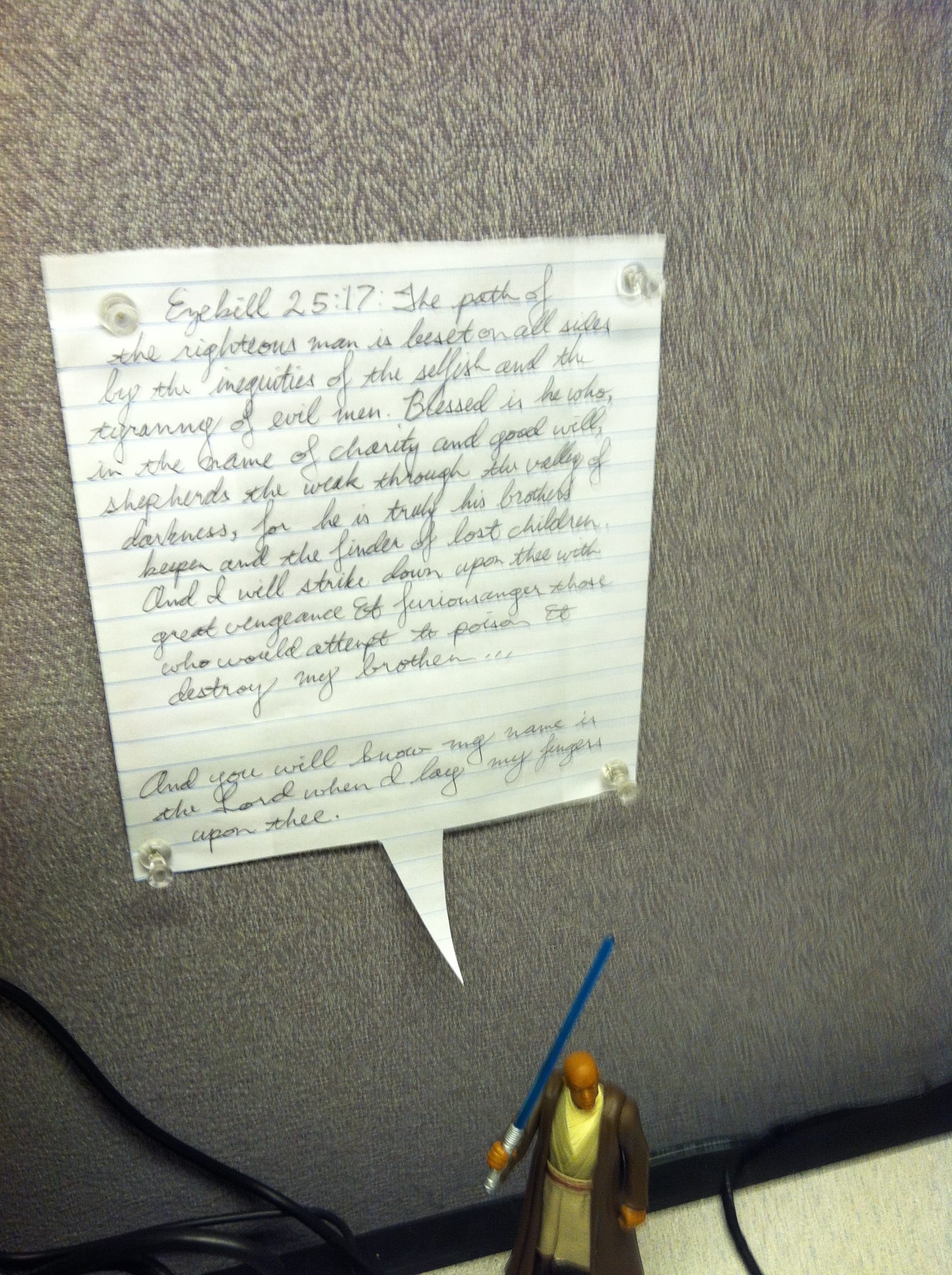 It wasn't easy, or predictable, but I was young and had a used Hyundai Elantra that I probably put 16,000 miles on that year. And after doing that for about 5 months, I managed to find a real position: that October, I found work at a computer reseller as part of a cohort of new hires at some point in the fall. Here's a photo from my cube from back then: